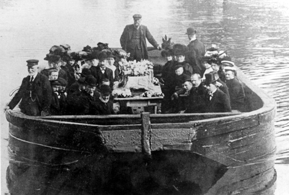 drowned. 'Coody' at the helm, Charlie Stebbens on the right in
