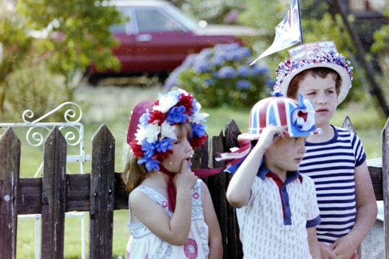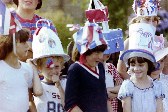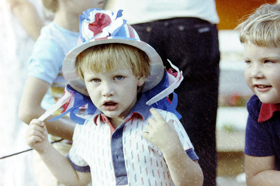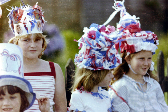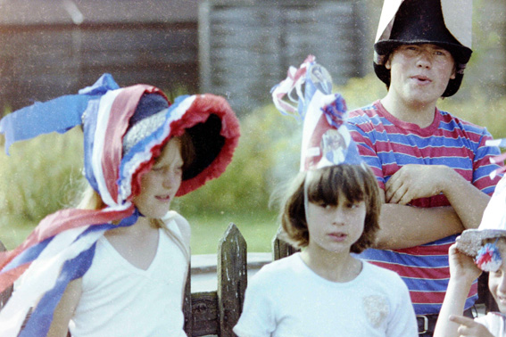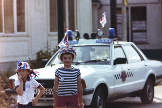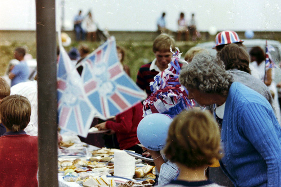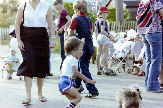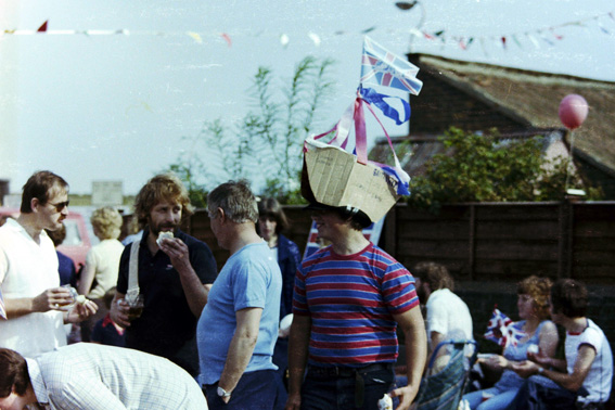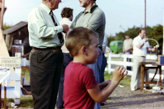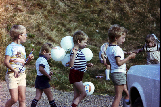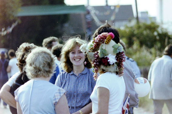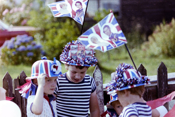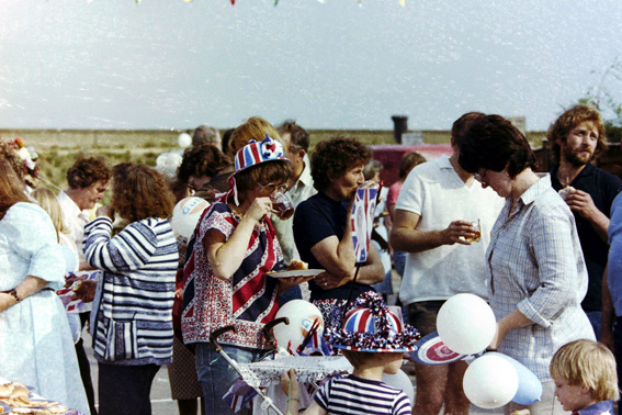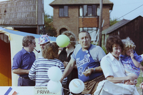 jacket. Russel Pitt with pipe and his wife behind the balloon. |