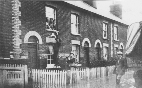 terraced cottages pictured the flood of 1928. The photo features