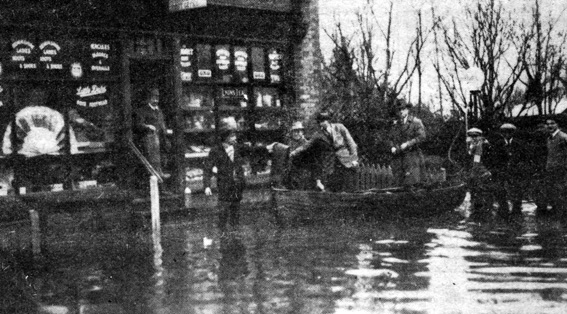 height. Upwards of 30 houses were flooded. Milk and bread were
