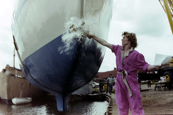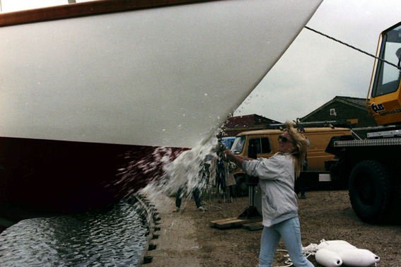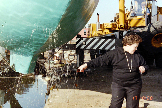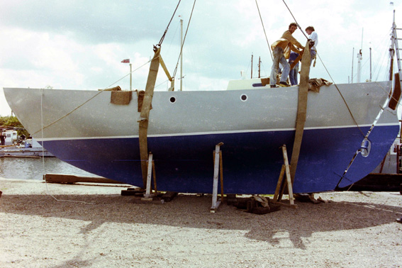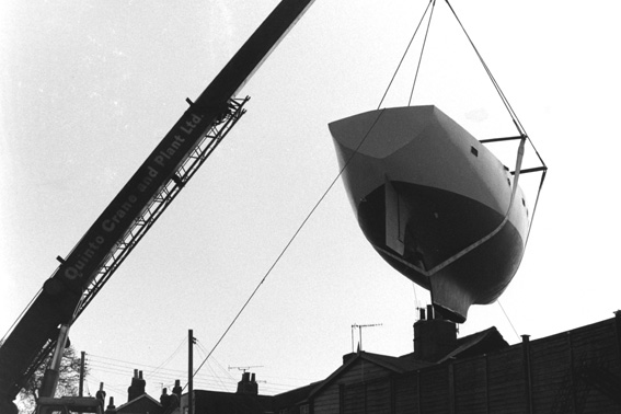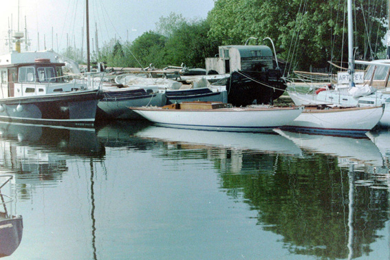 double-ended gaff sailing cruisers waiting to be rigged. (the