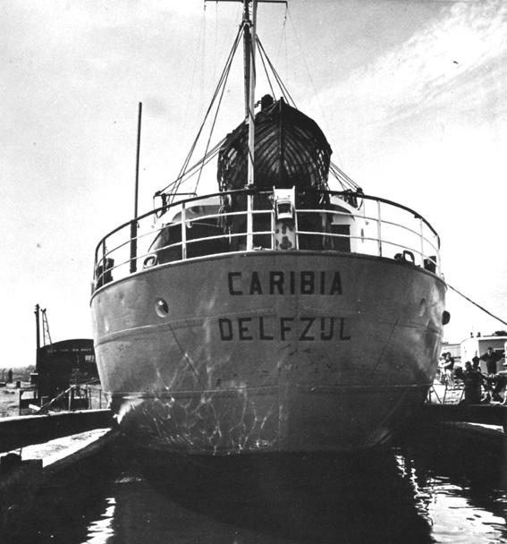 largest vessel in beam to use the lock, the Dutch 300 ton 'Caribia'