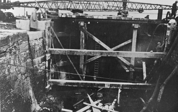 (above) 1964 work underway on the outside lockgate |