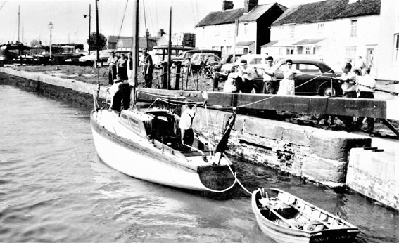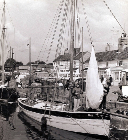 the smack 'Mary', Sue and Tom Polden on the foredeck. |