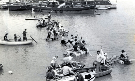 (above) preparation for the 'Raft Race'. |