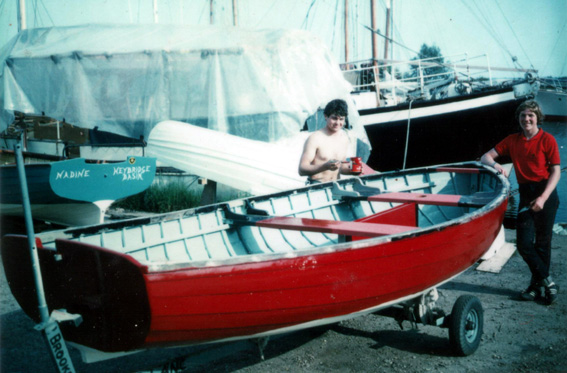 to his red boat that he rebuilt. Stuart's blue 'Nadine' is to