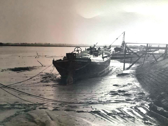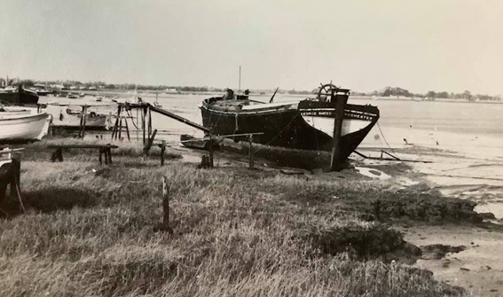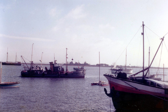 barge in the left foreground, the oyster boat 'Karenda' of Colin