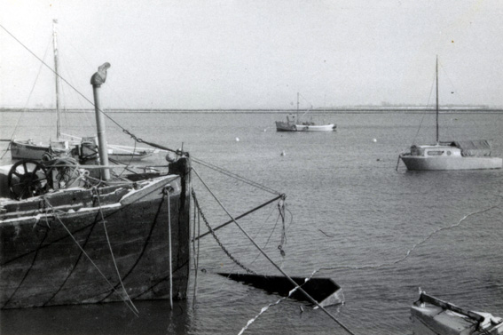 (below) 1977. The waterfront of Stebbens mooring area.