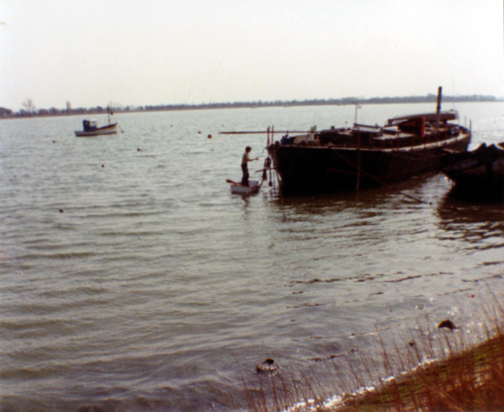steel storage barge sunk at the bow of the barge. 1979 |
