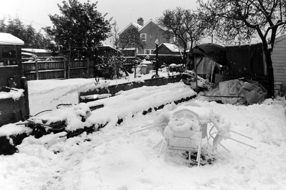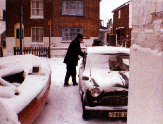'River Cottage' in Basin Road. Colin Brookes cleaning snow off