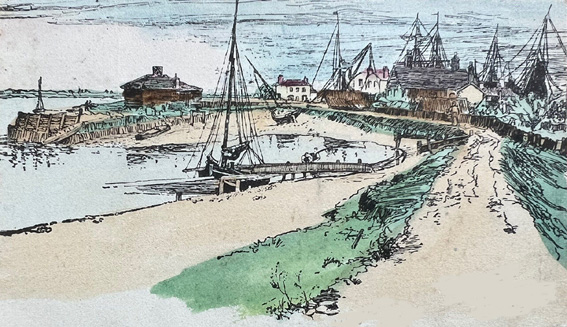 the smacks 'Mystery' and 'Mona'. Rat Hall on Muckers Island behind