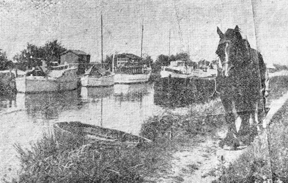 his journey, a horse pulling a barge nears the Basin in May 1950. |