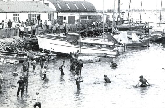 Rowing'. Peter Brookes and Ben Woodcraft in the white dinghy.